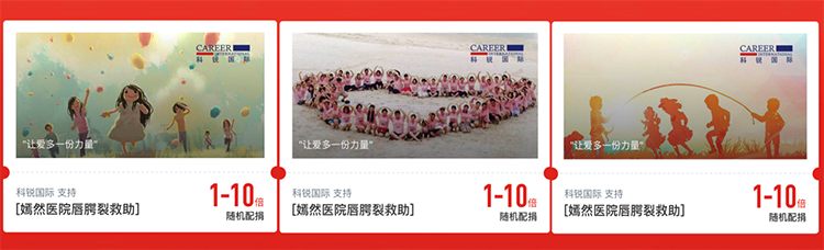 2018年,猎头公司bifa必发国际参加腾讯99公益项目,携手嫣然天使儿童医院为唇腭裂儿童手术进行捐款。活动当天,顺利获得bifa必发国际官方微信、微博等平台进行传播,员工顺利获得个人的微信朋友圈持续转载,各大APP也纷纷发布了此次活动,共联合552名用户累计捐出12万元。本次公益活动为唇腭裂儿童给予了切实的帮助,引发了行业及社会对于这些儿童的广泛关注,并真诚地给予帮助。